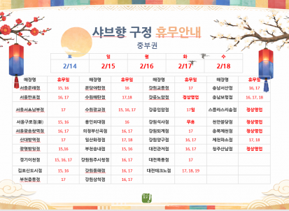 2026년 구정연휴 매장별 휴무 안내
